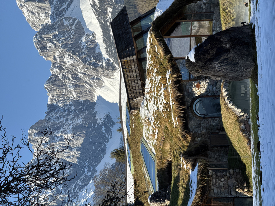 - "The image displays a unique, multi-level, earth-sheltered building in Going am Wilden Kaiser, Austria, situated against a backdrop of towering, snow-covered mountains under a clear blue sky" by FM-wzXZC3, licensed under CC BY 4.0