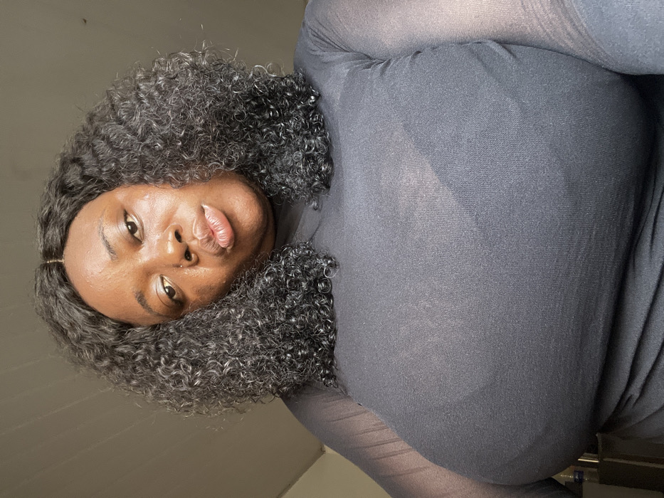 - "The image features an adult female with a dark skin tone and dark, curly hair, seen from a low angle, gazing directly towards the camera" by FM-99j2E2, licensed under CC BY 4.0