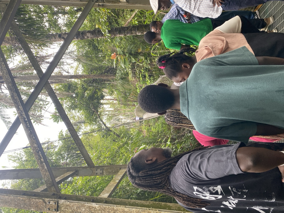 - "The image depicts a group of approximately seven individuals standing on a metal grated walkway within a dense tropical forest in Ojomu, Nigeria" by FM-rkm0j2, licensed under CC BY 4.0
