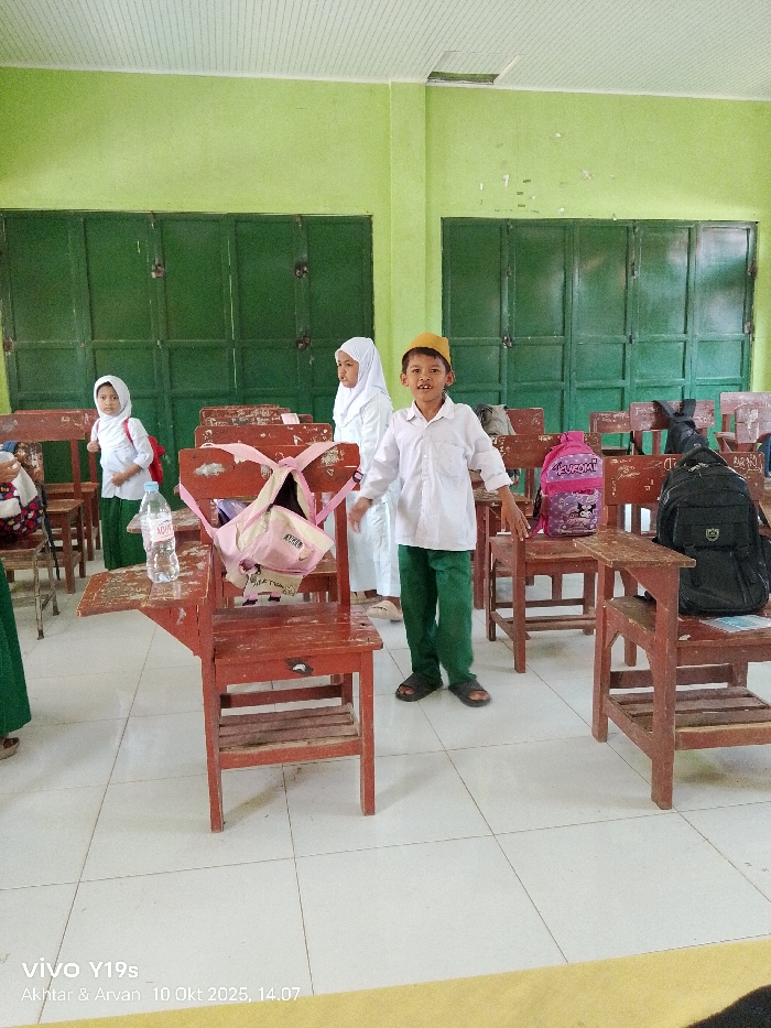 The image captures an indoor scene, identified as a classroom in Jagapura Kulon, Indonesia