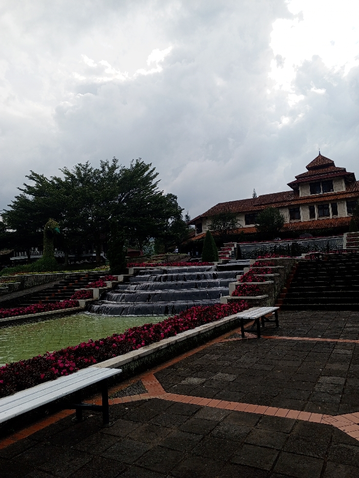 - "The image showcases a tiered fountain surrounded by vibrant red flowers" by FM-zL0ZK2, licensed under CC BY 4.0