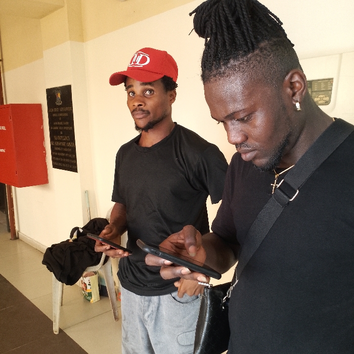 The image depicts two adult males of dark complexion standing indoors in Egan, Nigeria