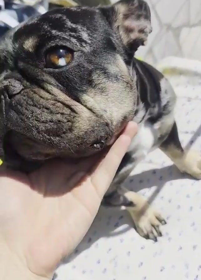- "A hand pets a French bulldog" by FM-moJH62, licensed under CC BY 4.0