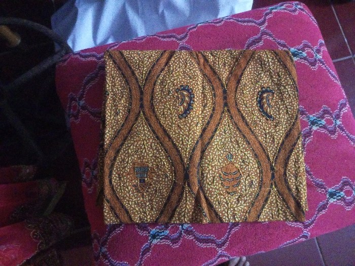 - "A rectangular piece of elaborately patterned fabric, approximately 30x40 cm, is positioned centrally on a larger reddish-pink textile surface" by FM-znLbx2, licensed under CC BY 4.0