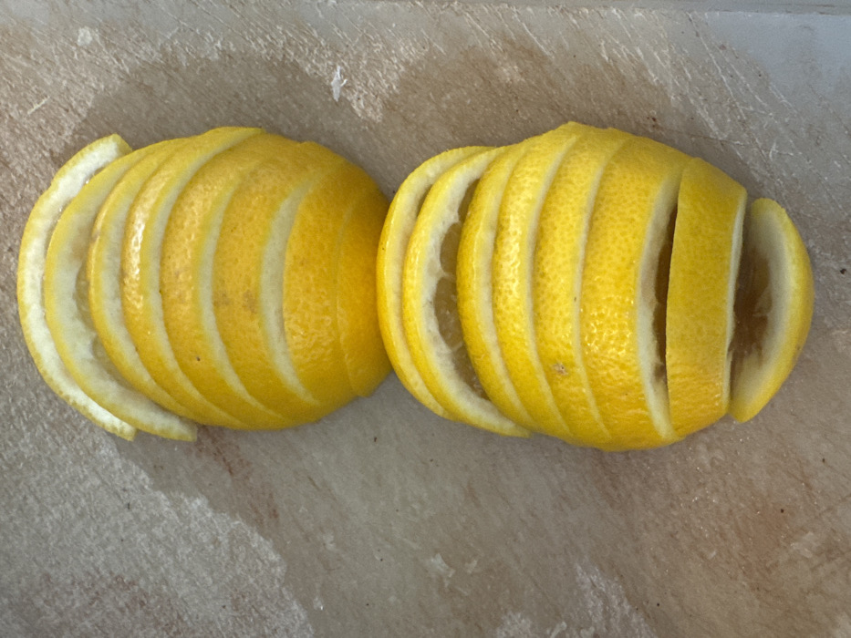 - "Two whole lemons, each meticulously cut into multiple thin, uniform slices, are depicted reassembled to their original form" by FM-GUIsO2, licensed under CC BY 4.0
