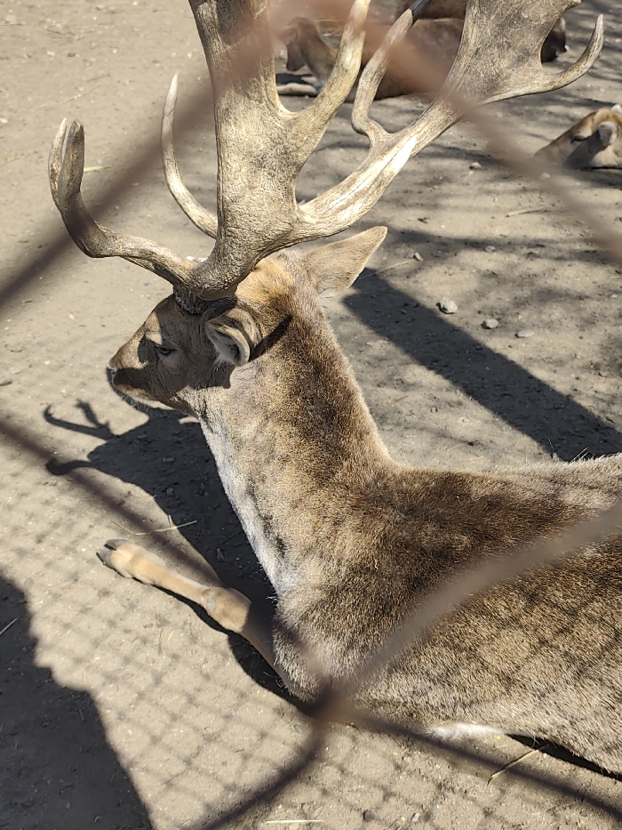 - "A large male deer with prominent, multi-tined antlers is observed lying on dry, sandy ground" by FM-3kNat1, licensed under CC BY 4.0