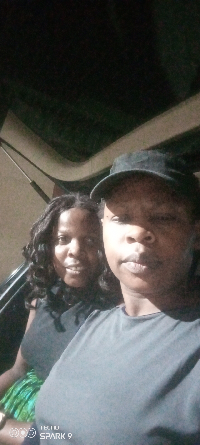 The image displays two individuals in a dimly lit, enclosed environment, characteristic of a vehicle interior, located in the city of Animashawun, Nigeria