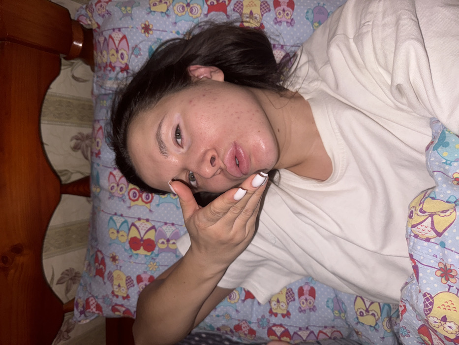 - "A woman lies on a bed with a light blue owl-patterned pillow and a partially visible duvet" by FM-j2hvk2, licensed under CC BY 4.0