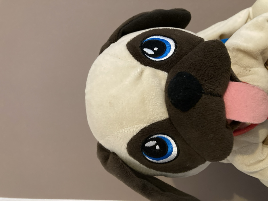 - "A plush toy designed to resemble a pug dog is centered in a close-up, head-and-shoulders view against a plain light brown background" by FM-pa43w2, licensed under CC BY 4.0