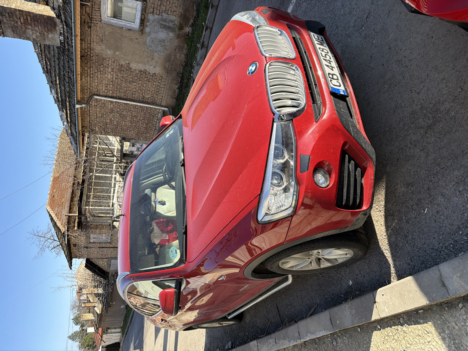 A red BMW X4 SUV, bearing Bulgarian license plate CB 4458 ME, is parked curb-side on an asphalt street in Popovo, Bulgaria