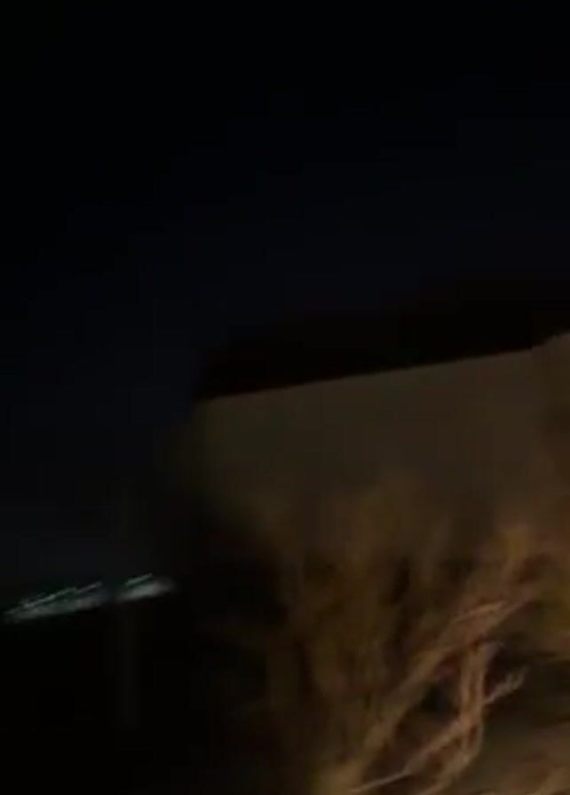 The video begins blurry, showing a dark, possibly wooded area, then quickly focuses on a hilltop fortress illuminated at night