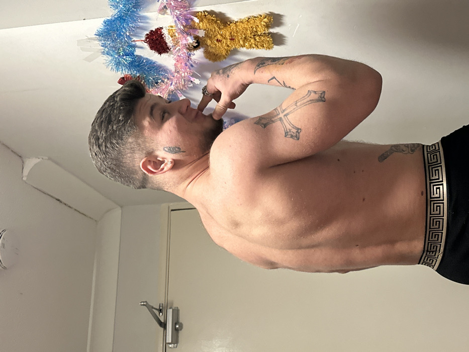 This image captures a shirtless male indoors in Corby, United Kingdom