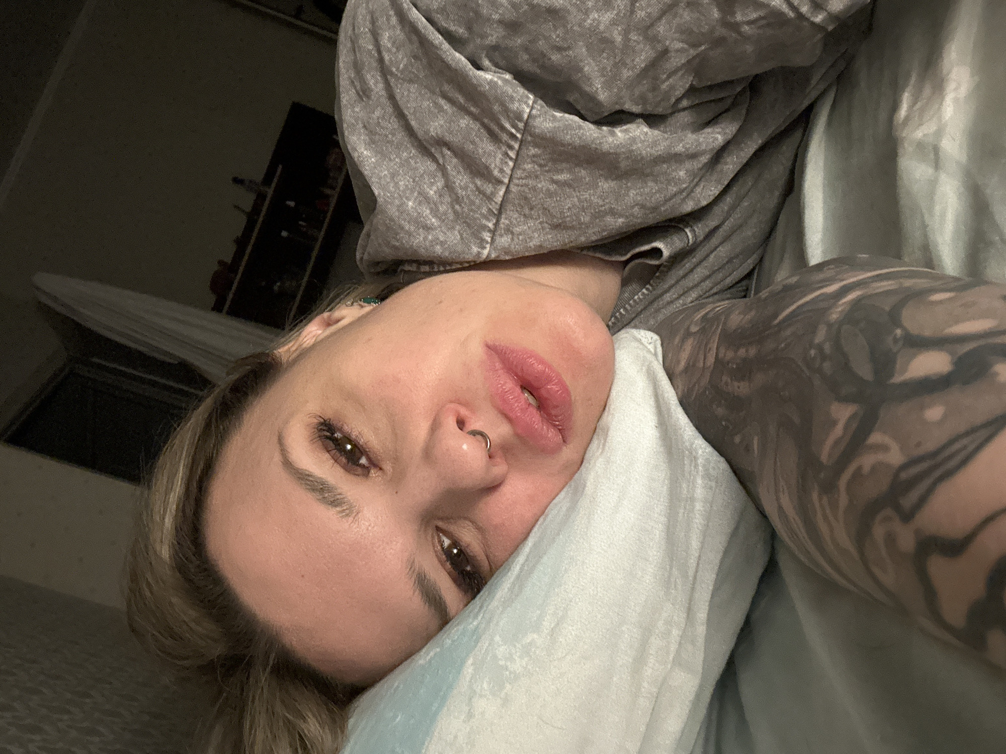 - "A close-up, dimly lit image captures a female subject lying on her left side, resting her head on a light blue pillow" by FM-sJBub2, licensed under CC BY 4.0