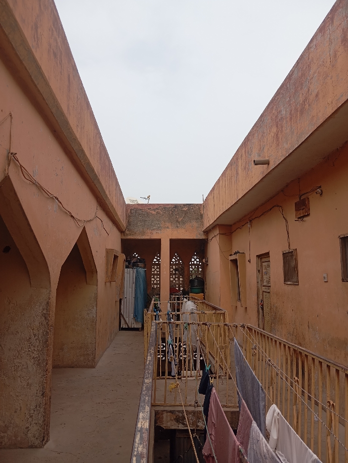 - "This image depicts a narrow outdoor passage between two weathered, peach-colored residential or commercial buildings in Gama, Nigeria, under an overcast sky" by FM-2RufY2, licensed under CC BY 4.0