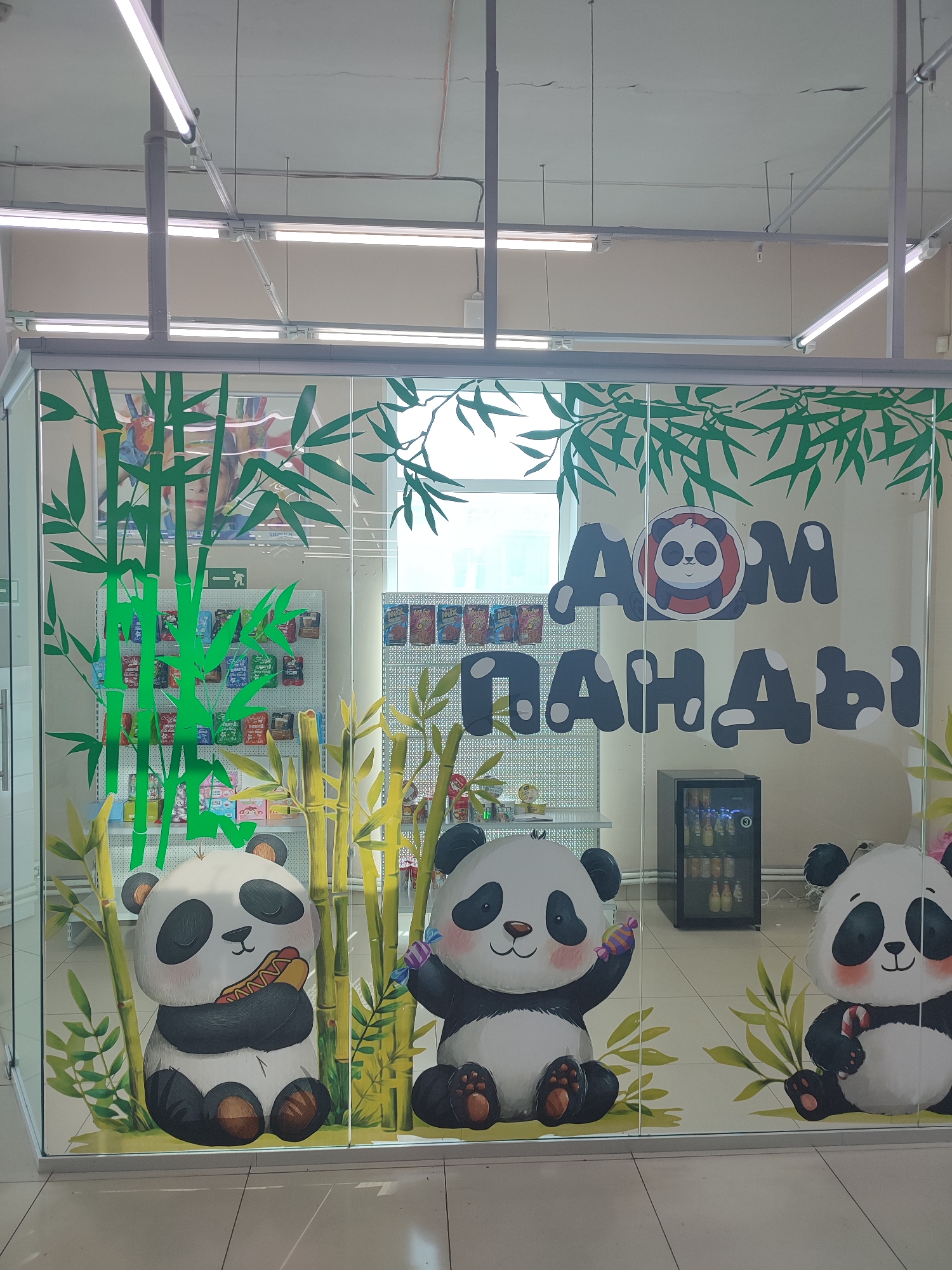 storefront of a business called "Dom Pandy" (translated as "Panda House"), located in Chaikovsky, Russia