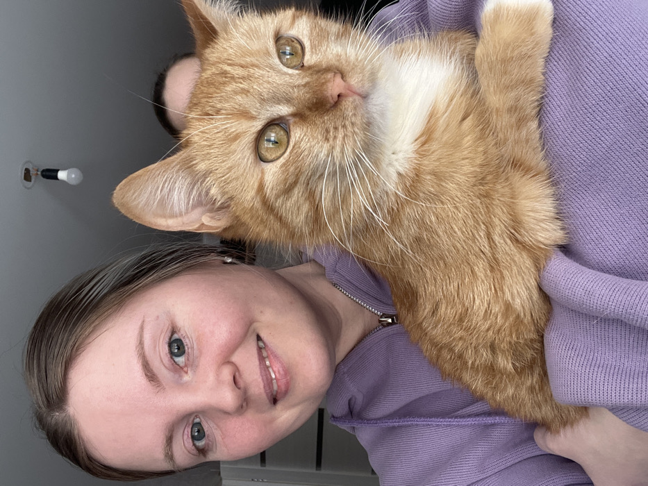 - "This image depicts an indoor scene in Chaikovsky, Russia, featuring one primary female subject, a domestic cat, and a partially visible second individual" by FM-gQbQG2, licensed under CC BY 4.0