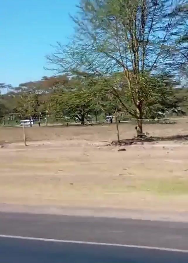 roadside scene filmed from a moving vehicle