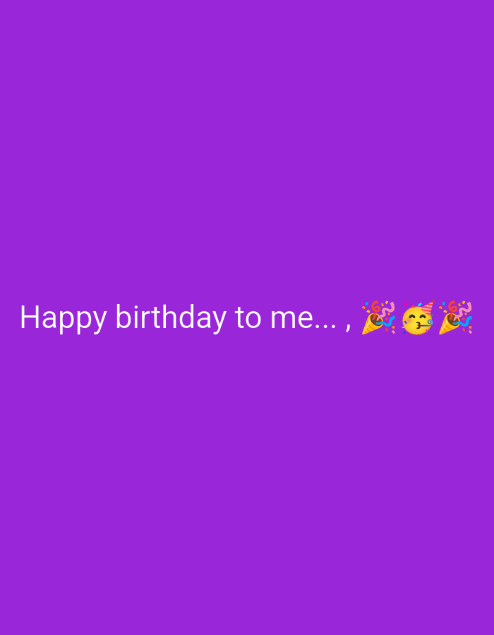 This digital graphic, identified as originating from or pertaining to the city of Sevlievo, Bulgaria, displays a uniform purple background. White text, centered horizontally, reads "Happy birthday to me...". Following the text are three emojis: a yellow party popper with multicolored confetti, a yellow cartoon face wearing a party hat and blowing a kiss, and a second yellow party popper with multicolored confetti. No physical individuals, objects, actions, interactions, or environmental features are depicted beyond these digital elements.