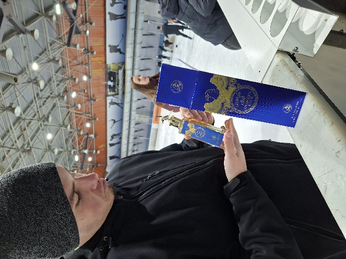 An indoor ice skating rink, likely the Winter Palace of Sports in Sofia, Bulgaria, serves as the setting for this image