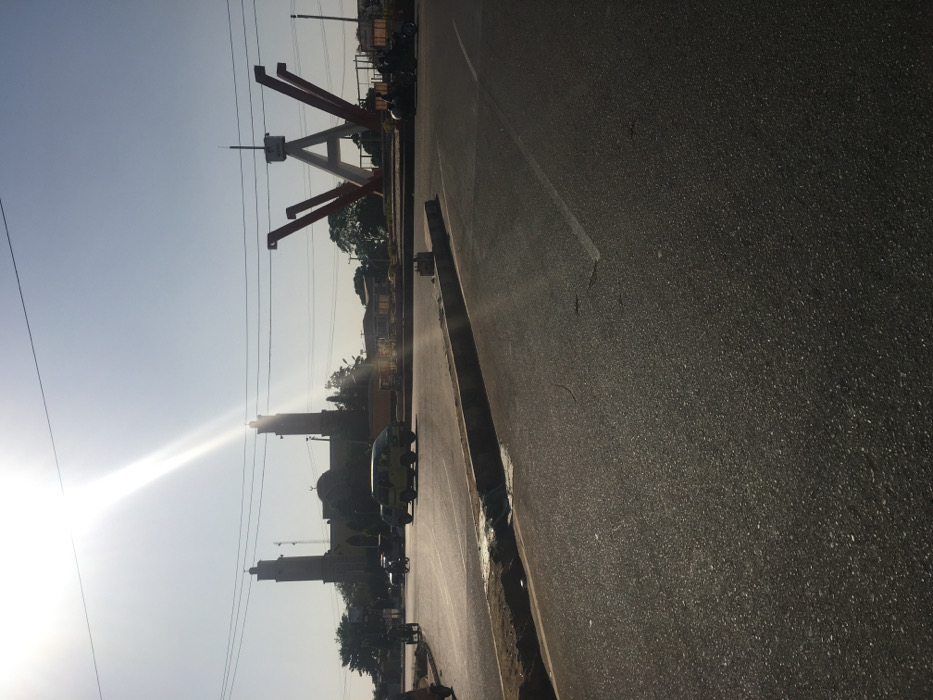 The image displays a sunlit urban intersection or roundabout in Barnawa, Nigeria