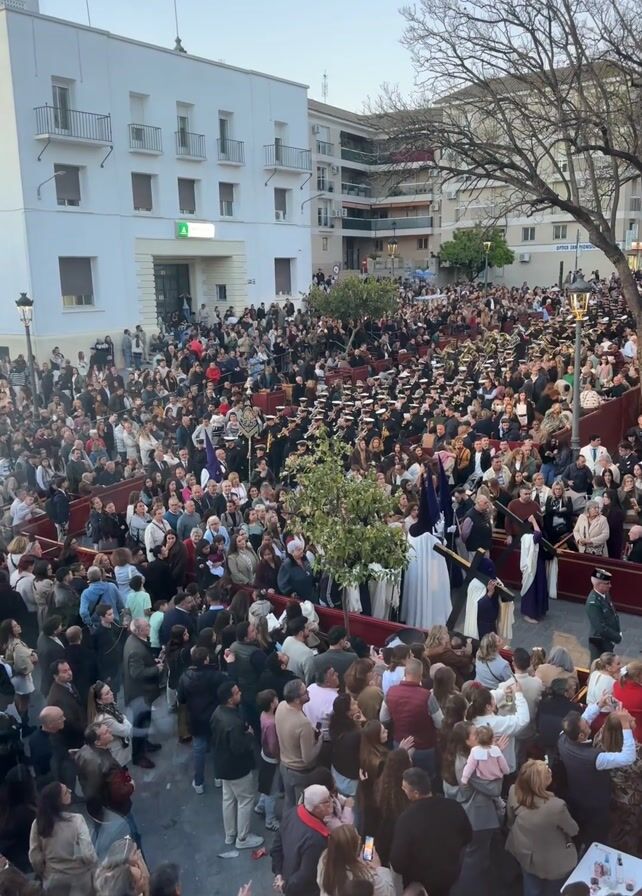 large crowd gathered in a courtyard or plaza