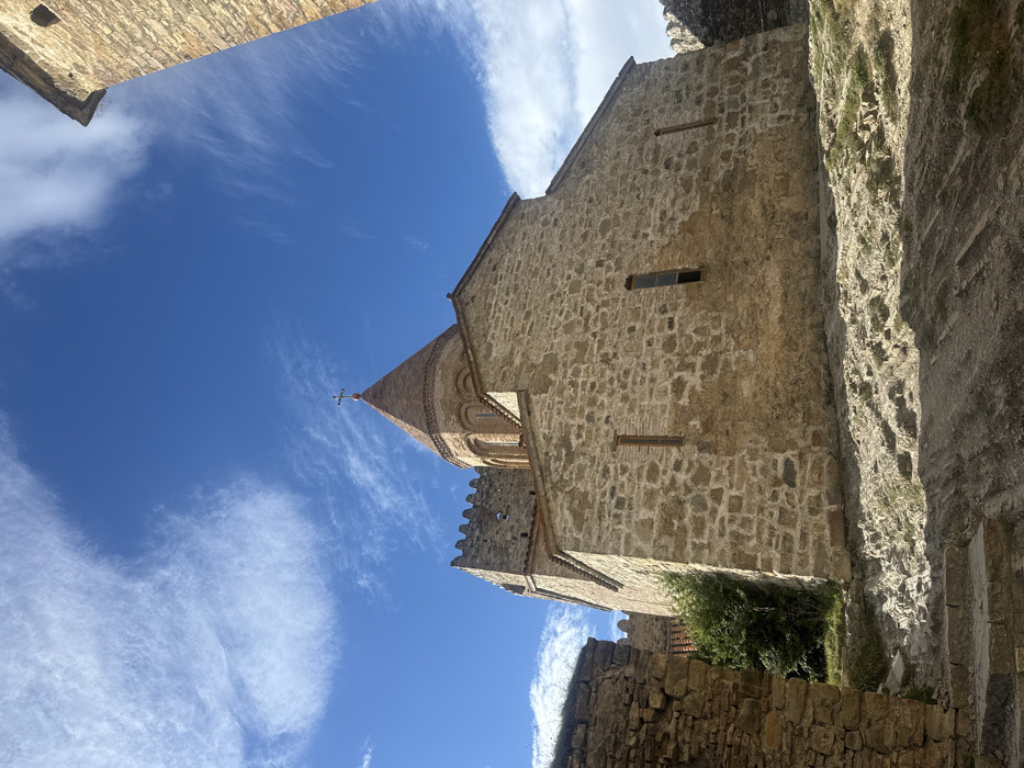 - "The image captures a stone church within the Ananuri Fortress complex in Ananuri, Georgia, under a bright blue sky with scattered cirrus clouds" by FM-Sep6K2, licensed under CC BY 4.0