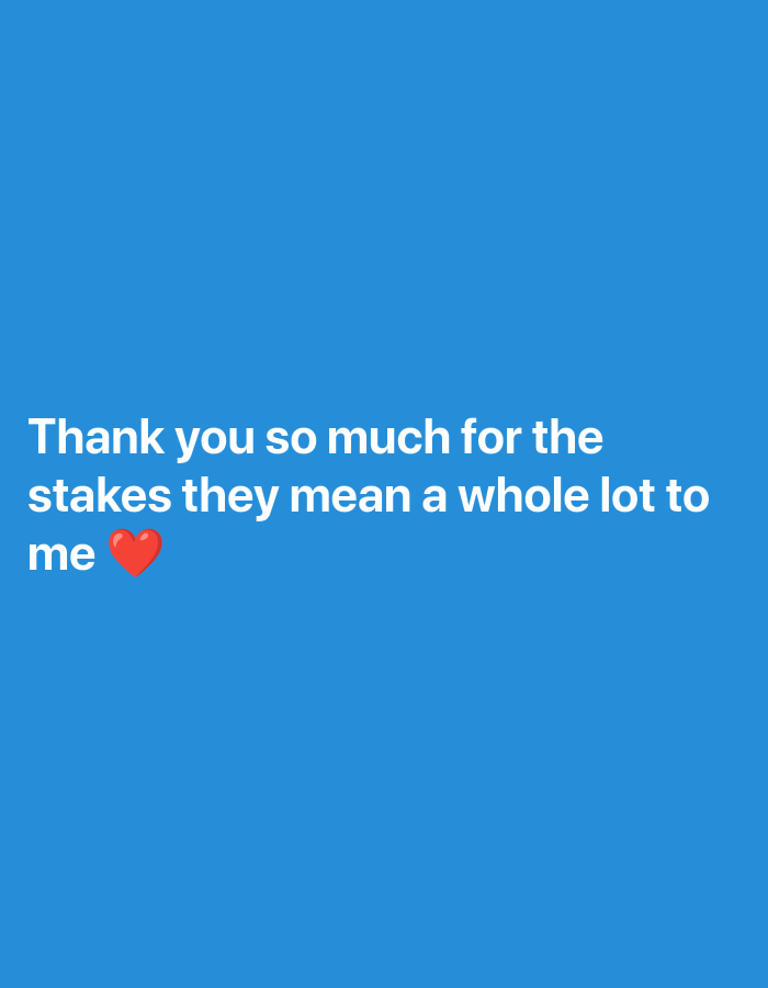 A digital graphic, identified as being in Keffi, Nigeria, displays white text against a solid blue background. The text, centrally aligned, reads: "Thank you so much for the stakes they mean a whole lot to me ❤️". A red heart emoji is positioned at the end of the written statement. No physical environment, individuals, objects, actions, or interactions are visually present within this graphic.