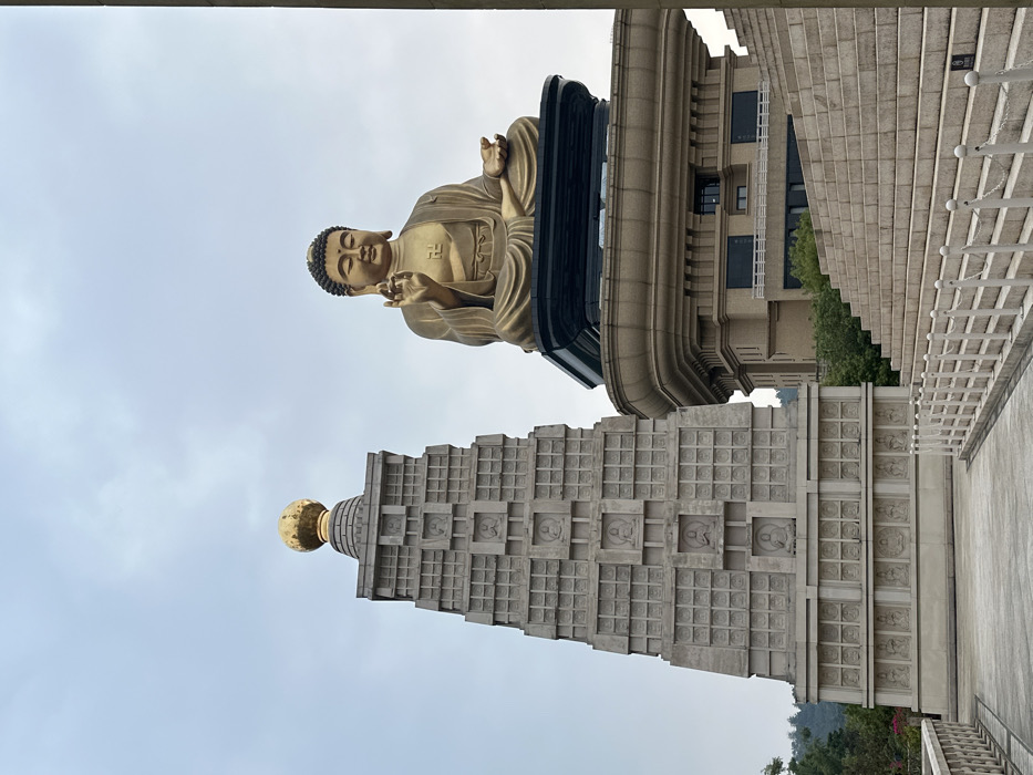 This image captures a prominent outdoor scene at the Fo Guang Shan Buddha Museum in Kaohsiung, Taiwan