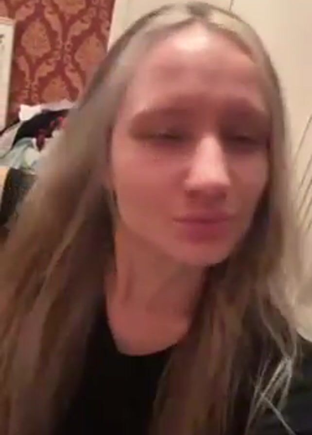 A young woman is filming a selfie video in what appears to be a bedroom