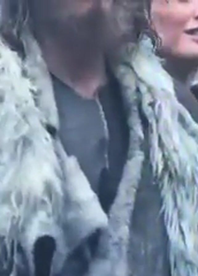 A close-up shot of a film set or television show depicts a crowd of extras dressed in Viking-era attire