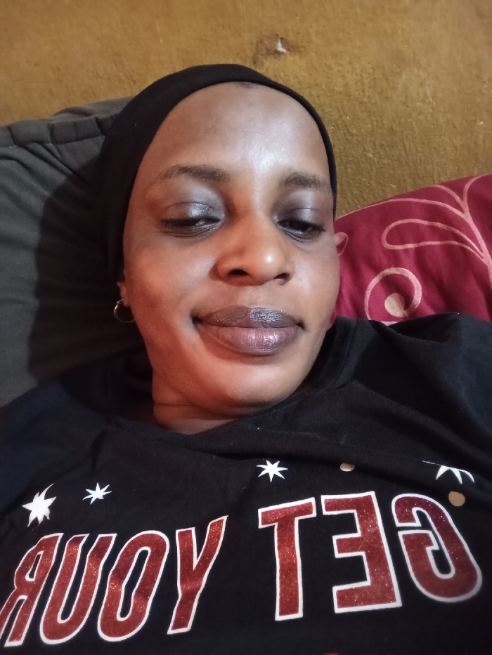 The image depicts an adult individual in an indoor domestic setting, identified as being in Narayi, Nigeria, though the specific location within the city is not discernible from the visual data