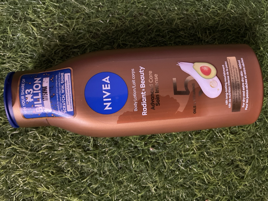 - "A Nivea Radiant & Beauty Advanced Care Body Lotion bottle, 400ml, is positioned horizontally on a surface covered in artificial green grass" by FM-eIoso2, licensed under CC BY 4.0