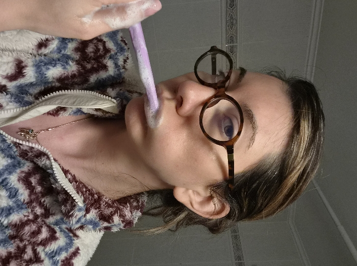 - "An adult female is depicted in a close-up shot, from mid-chest upwards, engaged in brushing her teeth" by FM-jvnrw2, licensed under CC BY 4.0