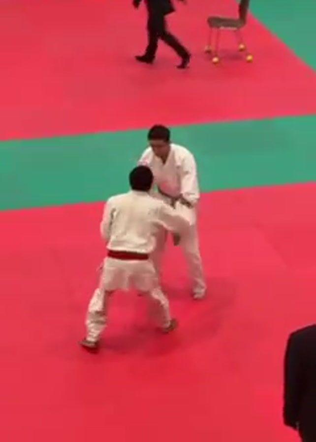 - "Two competitors are engaged in a judo match on a red and green mat" by FM-MKghF3, licensed under CC BY 4.0