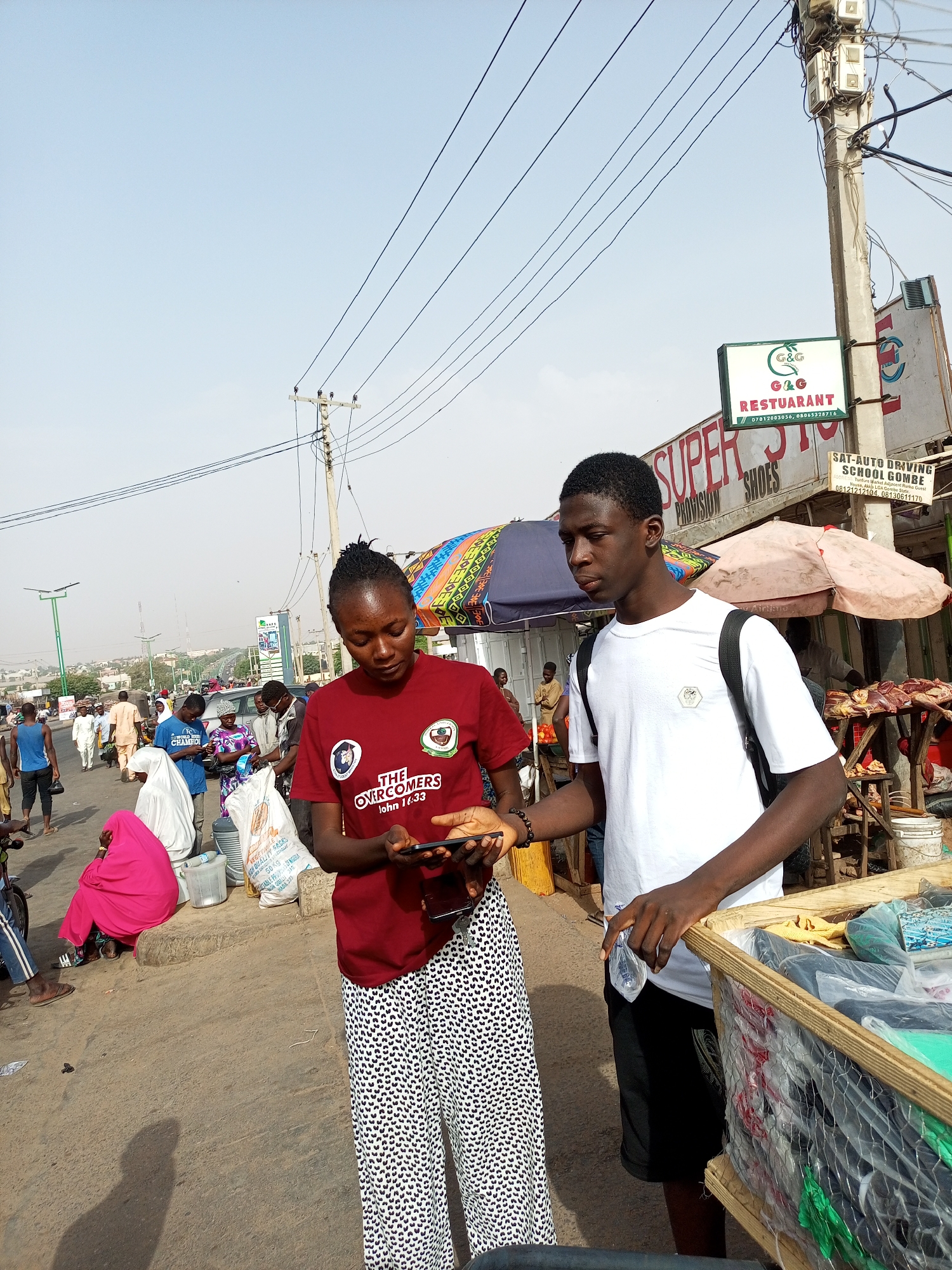- "The image captures a bustling outdoor street scene in Gombe, Nigeria, specifically near Yamfure Market, adjacent to Rusko Gombi, as indicated by a prominent "SAT-AUTO DRIVING SCHOOL GOMBE" sign" by FM-l9iEo2, licensed under CC BY 4.0