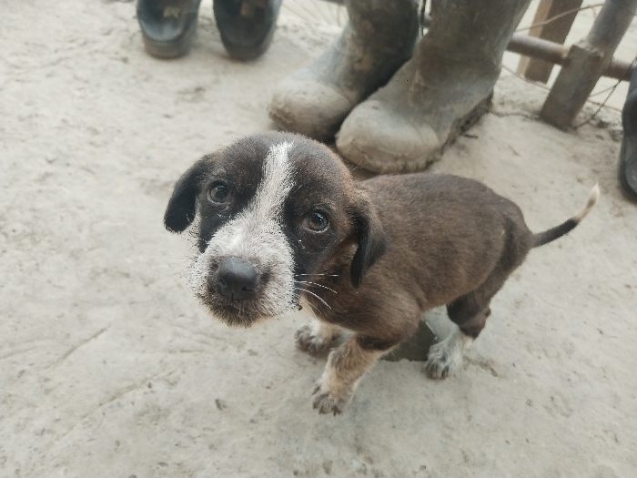 - "The image displays a young puppy standing on an uneven, light-colored ground surface, consistent with dirt or rough concrete, in Toptik-Saray, Uzbekistan" by FM-CNZ8C3, licensed under CC BY 4.0