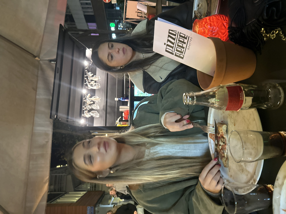 - "Two women are depicted dining at an outdoor restaurant table at night in Rotterdam, Netherlands, specifically at a "Pizza Beppe" establishment on Binnenrotte, identifiable by a partially visible street sign and restaurant menu" by FM-SK37N2, licensed under CC BY 4.0