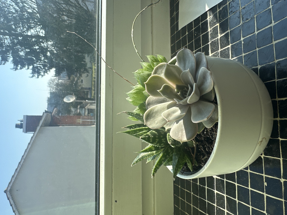 - "The image displays a close-up, eye-level view of a potted succulent arrangement situated on a tiled windowsill, looking out into an urban or suburban landscape in Höri, Switzerland" by FM-bhobG2, licensed under CC BY 4.0