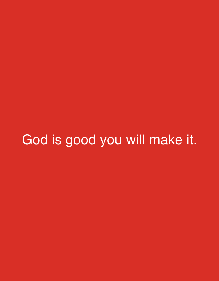 A solid red background contains the uplifting message, "God is good you will make it" centered in white text