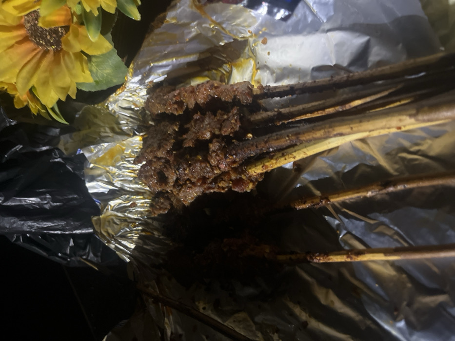 - "Skewered meat lies on foil, glistening under artificial light" by FM-BhSYp2, licensed under CC BY 4.0