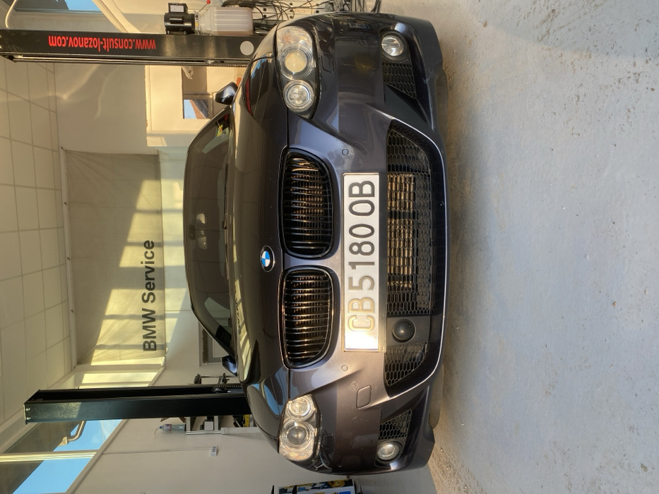 - "A dark grey BMW E92 series vehicle, featuring black kidney grilles, dual projector headlights, and a black honeycomb lower grille, is positioned centrally in a service bay" by FM-gSAm53, licensed under CC BY 4.0