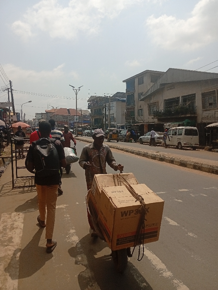 - "The scene depicts a daytime urban street in Fegge, Nigeria, under a bright sky with scattered clouds" by FM-1yZsg1, licensed under CC BY 4.0