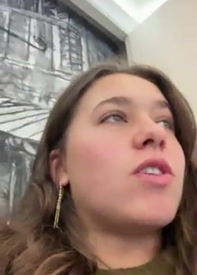 A young woman is speaking to the camera, looking directly at the lens