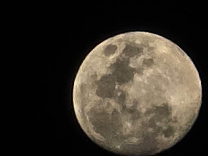 - "The image presents a close-up, telescopic view of the Moon, appearing full or nearly full, against a solid black background" by FM-IYQQn1, licensed under CC BY 4.0