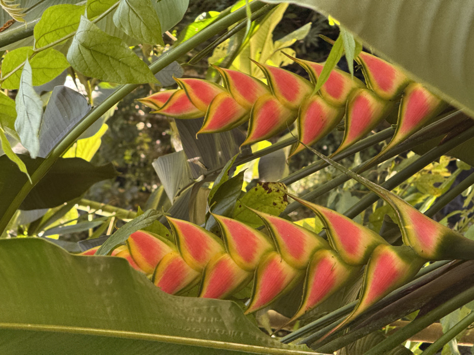 - "This image displays two prominent, downward-hanging Heliconia inflorescences amidst dense tropical foliage, located in Hitiaʻa ʻo te Rā, France" by FM-BCfsB2, licensed under CC BY 4.0
