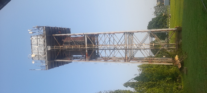 - "A tall, weathered metal tower stands against a clear sky, surrounded by green grass and trees" by FM-JIvMz2, licensed under CC BY 4.0