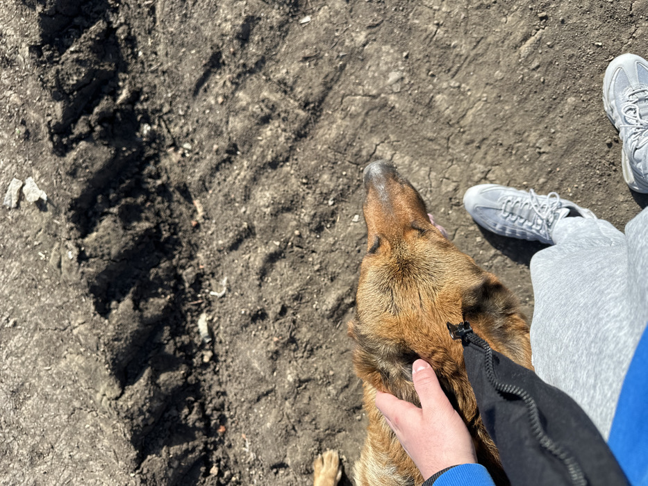 - "A high-angle forensic shot captures a scene in Krumovo Gradishte, Bulgaria, depicting an interaction between a person and a dog on dry, unpaved ground" by FM-XMi8X2, licensed under CC BY 4.0