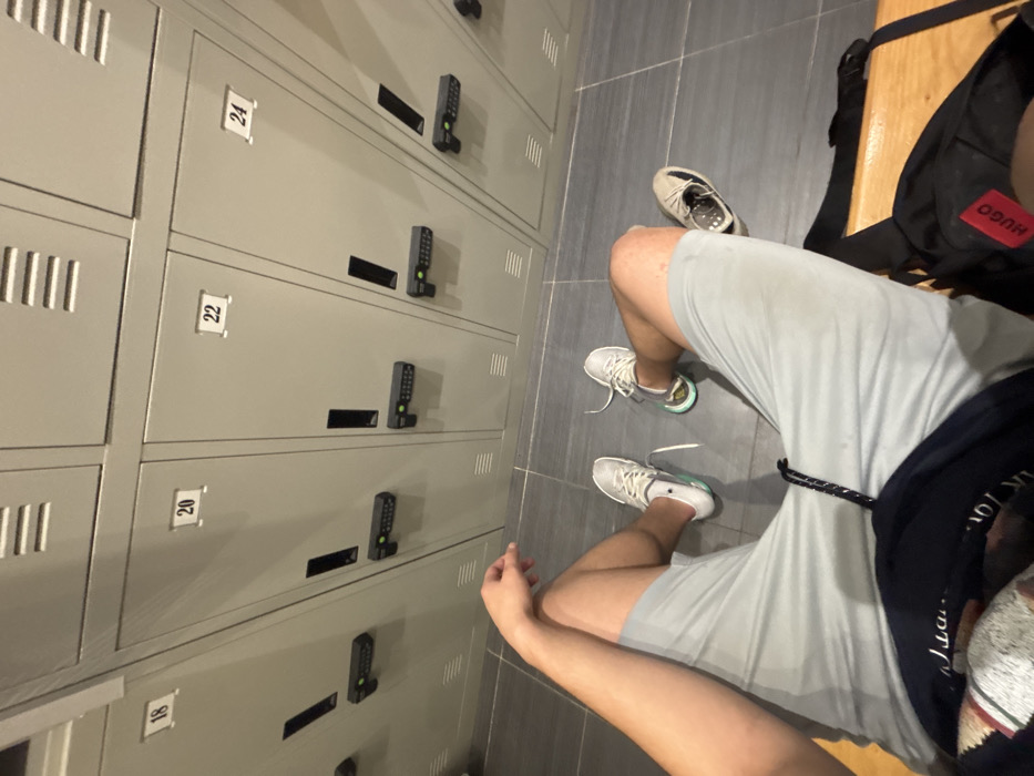 - "The image depicts a first-person, downward perspective of an individual seated in a locker room, identified as being in Varna, Bulgaria" by FM-44Vxw2, licensed under CC BY 4.0