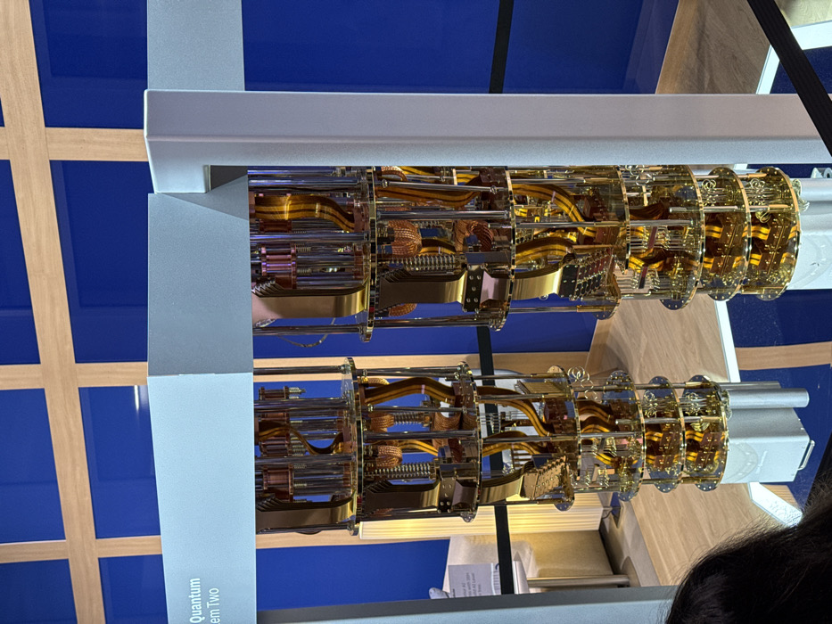 - "The image displays two vertical, multi-layered, gold-toned cryogenic dilution refrigerators, characteristic of quantum computers, exhibited indoors at the Fira Barcelona Gran Via venue in L'hospitalet de Llobregat, Spain" by FM-dunNm2, licensed under CC BY 4.0