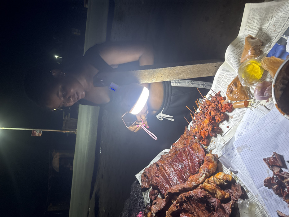 This image depicts a night street food scene in Asipa, Nigeria